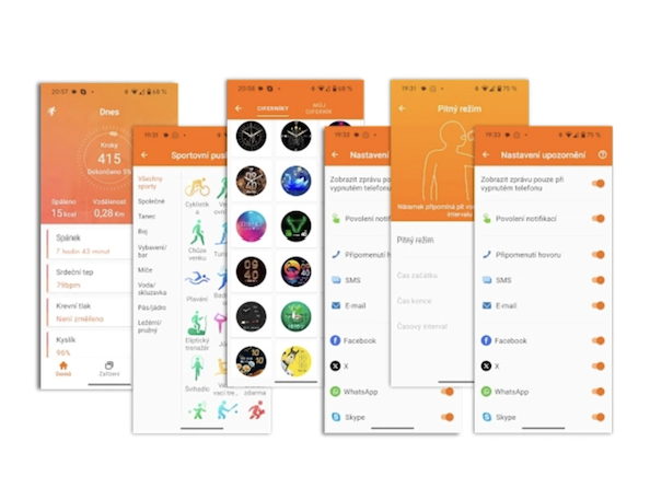 • Propojení se Strava, Apple Health, Health Connect od Google