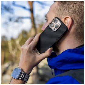 Ochranný aramidový zadní kryt FIXED MagVelar s podporou Magsafe dokonale udrží váš mobilní telefon Apple iPhone 17 v bezpečí. Obal vydrží i v extrémních podmínkách jako jsou vysoké teploty, pády, nárazy. A to proto, že je vyroben z aramidových vláken podobných kevlaru tj. materiál známý svou mimořádnou pevností a odolností s využitím v letectví i vojenství.
