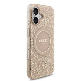 Praktický zadní kryt Guess IML Flowers Allover Strap MagSafe pro mobilní telefon Apple iPhone 17. Pouzdro značky GUESS má styl a je také módním doplňkem. Design krytu je podtržen logem Guess ve zlatém kruhu na zadní straně krytu což z něj činí okrasu vašeho smartphonu.