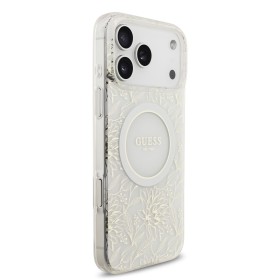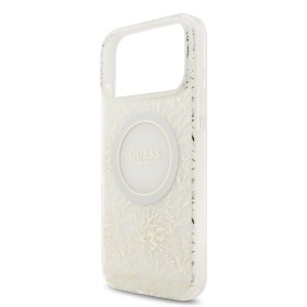 Praktický zadní kryt Guess IML Flowers Allover Strap MagSafe pro mobilní telefon Apple iPhone 17 Pro Max. Pouzdro značky GUESS má styl a je také módním doplňkem. Design krytu je podtržen logem Guess ve zlatém kruhu na zadní straně krytu což z něj činí okrasu vašeho smartphonu.