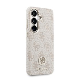Ochranný zadní kryt Guess PU Leather 4G Strass Logo Gold Frame Magnetic pro mobilní telefon Samsung Galaxy S26. Chrání před poškozením při každodenním používání. Guess „4G“ elegantní potisk doplněným o Strass Logo dodává obalu luxusní vzhled. Rámeček zadního fotoaparátu je navíc zdoben elegantním zlatým provedením což je nápaditý prvek.