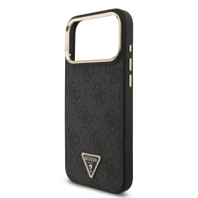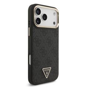 Ochranný kryt Guess PU Leather 4G Strass Triangle Logo Gold Frame MagSafe vyrobený přesně pro mobilní telefon Apple iPhone 17 Pro Max. Jde o ochranu před poškozením, poškrábáním i pády při běžném používání. Zaujme vás styl a funkčnost. Vyklouznutí z ruky zabrání povrchová úprava obalu. Krásný vzhled podtrhne nápadný Guess „4G“ elegantní potisk doplněným o zlaté triangle logo GUESS. Rámeček zadního fotoaparátu je zdoben elegantním zlatým provedením. Tento design dává krytu punc luxusu.