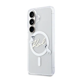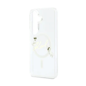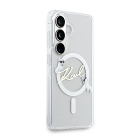 Dokonalý zadní kryt Karl Lagerfeld IML Choupette Karl Script Logo Magnetic pro váš mobilní telefon Samsung Galaxy S26. Chrání před poškozením při každodenním používání.Stylové Script logo doplněné hravou kočkou Choupette uprostřed krytu nabízí jedinečný design. Kombinuje odolnost, estetiku a pohodlí. Tento model pouzdra je vybaven magnetickou funkcí, která umožňuje snadné a bezpečné uchycení k magnetickým držákům - například v autě. Magnet uvnitř krytu drží pevně, aniž by narušoval signál, nebo funkce mobilu.