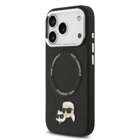 Originální ochranný kryt Karl Lagerfeld PU Karl and Choupette Heads Pins MagSafe přímo vyrobený pro mobilní telefon telefon Apple iPhone 17 Pro. Stylově doplňuje váš outfit. Povrch krytu má texturou zrnité kůže a celé tělo pouzdra je z PU materiálu elegantním logem Karla Lagerfelda a jeho kočky Choupette, tato povrchová úprava zajistí, že se skvěle drží v ruce a neklouže, což minimalizuje riziko vyklouznutí telefonu. Poskytuje vašemu mobilnímu telefonu ochranu před poškrábáním, otřesy, prachem, nebo při případném pádu.