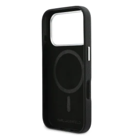 Originální ochranný kryt Karl Lagerfeld PU Karl and Choupette Heads Pins MagSafe přímo vyrobený pro mobilní telefon telefon Apple iPhone 17 Pro Max. Stylově doplňuje váš outfit. Povrch krytu má texturou zrnité kůže a celé tělo pouzdra je z PU materiálu elegantním logem Karla Lagerfelda a jeho kočky Choupette, tato povrchová úprava zajistí, že se skvěle drží v ruce a neklouže, což minimalizuje riziko vyklouznutí telefonu. Poskytuje vašemu mobilnímu telefonu ochranu před poškrábáním, otřesy, prachem, nebo při případném pádu.