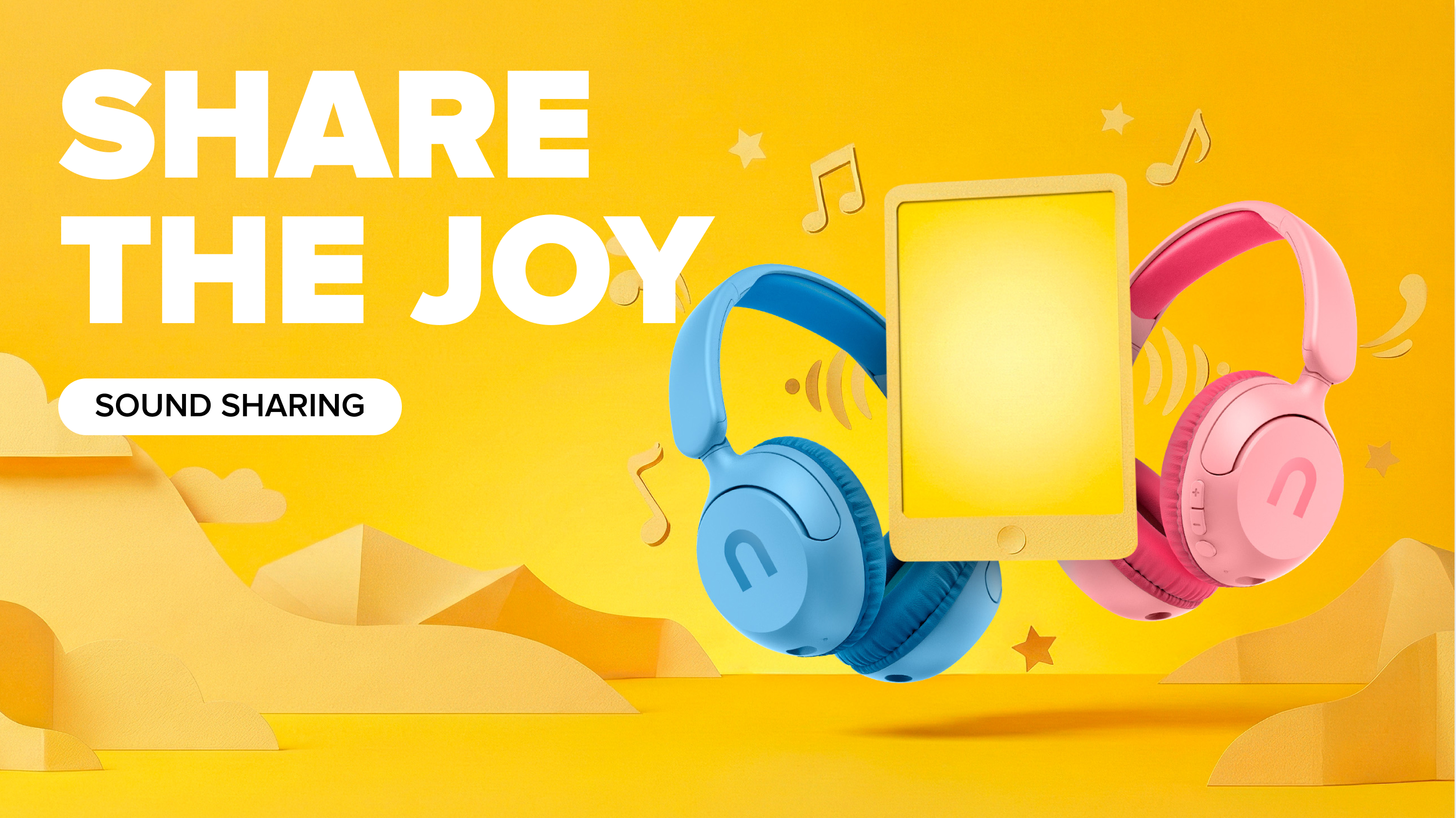 S funkcí Sound Share připojíš dvoje sluchátka Kiddie 2 k jednomu tabletu nebo telefonu a obě děti poslouchají najednou. Společně. A všichni budou spoko.