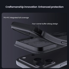 Zadní kryt Nillkin CamShield Pro Magnetic pro mobilní telefon Apple iPhone 17 Pro. Obal kombinuje klasické, módní a ochranné prvky, navíc s posuvnou krytkou čočky fotoaparátu. Kryt dodá vašemu smartphonu elegantní vzhled a ochrání telefon před pády, škrábanci i nečistotami.