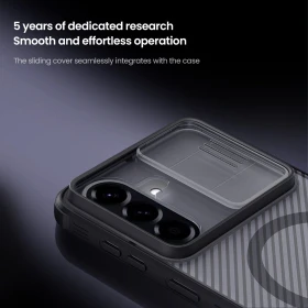 Zadní kryt Nillkin CamShield Pro Magnetic pro mobilní telefon Samsung Galaxy 57 5G. Obal kombinuje klasické, módní a ochranné prvky, navíc s posuvnou krytkou čočky fotoaparátu. Kryt dodá vašemu smartphonu elegantní vzhled a ochrání telefon před pády, škrábanci i nečistotami.