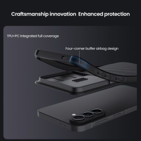 Zadní kryt Nillkin CamShield PRO pro Samsung Galaxy A37. Mimořádně odolné pouzdro, které nabízí perfektní ochranu vašeho zařízení před možným poškozením. Skvělým prvkem je posuvný jezdec, který dle potřeby zcela zakryje zadní kameru a ochrání jí před případným fyzickým poškozením nebo zaprášením. Celý mechanismus pouzdra funguje spolehlivě a kombinuje klasické, módní a ochranné prvky.