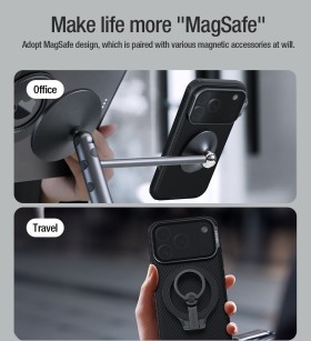 Zadní kryt Nillkin CamShield Prop Magnetic pro mobilní telefon Apple iPhone 17 Pro. Obal s výklopným krytem čočky fotoaparátu a integrovaným magnetem. Kryt dodá vašemu smartphonu elegantní vzhled a ochrání telefon před pády, škrábanci i nečistotami. Jde o účinný ochranný prvek mobilu.