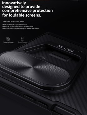 Zadní kryt Nillkin CamShield Prop pro mobilní telefon Samsung Galaxy Z Fold7. Obal s výklopným krytem čočky fotoaparátu. Kryt dodá vašemu smartphonu elegantní vzhled a ochrání telefon před pády, škrábanci i nečistotami. Jde o účinný ochranný prvek mobilu.