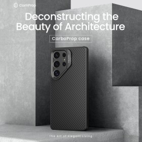 Odolný ochranný kryt Nillkin CarboProp Aramid Magnetic určený pro Samsung Galaxy S25 Ultra. Obal je vyroben z materiálu, kterému se říká v materiálovém průmyslu " černé zlato " a to je aramidové vlákno. Tento materiál s TPU představují komplexní bezpečí pro mobilní telefon, na kterém je pouzdro použito. Zadní strana je 5x pevnější bež ocel a TPU rámeček ochrání mobil kolem dokola.