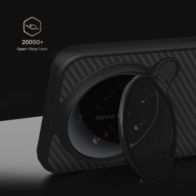Odolný ochranný kryt Nillkin CarboProp Aramid Magnetic určený pro Xiaomi 17 Ultra. Obal je vyroben z materiálu, kterému se říká v materiálovém průmyslu " černé zlato " a to je aramidové vlákno. Tento materiál s TPU představují komplexní bezpečí pro mobilní telefon, na kterém je pouzdro použito. Zadní strana je 5x pevnější bež ocel a TPU rámeček ochrání mobil kolem dokola.