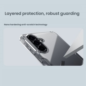 Kryt Nillkin Nature TPU PRO fajnově ochrání váš Samsung Galaxy A56 5G. Obal je vyrobený z kombinace dvou materiálů PC/TPU. Tato kombinace zajistí barevnou stálost a nezežloutnutí. Zadní stranu mobilního telefonu udrží v bezpečí odolný a pevný polykarbonát odolný proti poškrábání a hrany TPU pružný materiál na bocích.