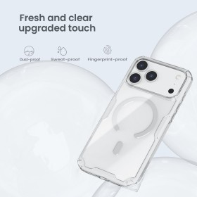 Kryt Nillkin Nature TPU PRO Magnetic s integrovaným magnetem pro Apple MagSafe příslušenství, který fajnově ochrání váš Apple iPhone 17 Pro Max. Obal je vyrobený z kombinace dvou materiálů PC / TPU. Zadní stranu mobilního telefonu udrží v bezpečí pevný polykarbonát s vlastností nežloutnutí odolný proti poškrábání, hrany měkký TPU materiál na bocích.