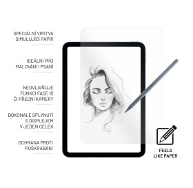 Ochranné tvrzené sklo FIXED PaperGlass Screen Protector pro tablet Apple iPad 10,9" (2022) s efektem paper-like což je imitující povrch jemně zdrsnělého papíru, dokonale ochrání displej vašeho iPadu a zároveň můžetebez omezení pracovat s Apple Pencil. Aplikací ochranného skla předejdete pohromám jako jsou škrábance, nebo prasklý displej. Tato ochrana zajistí, že dotyková obrazovka vašeho zařízení bude sloužit dlouho a spolehlivě.