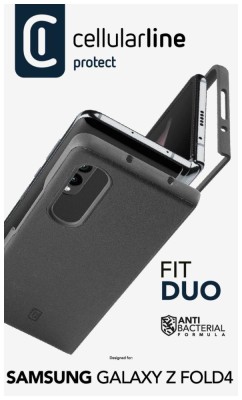 Elegantní zadní kryt Cellularline Fit Duo s koženým povrchem pro mobilní telefon Samsung Galaxy Z Fold4. Odolný kryt vyrobený přesně na daný model zařízení. Chrání před poškozením při běžném používání. Představuje stylovou ochranu. Kryt je tvořen dvěma samostatnými částmi, které kryjí tělo a odklápěcí část telefonu.