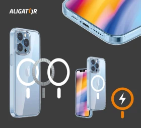 Ochranné pouzdro Aligator Mag-Skin pro mobilní telefon Samsung Galaxy S26 Ultra. Obal s podporou moderní technologie bezdrátového nabíjení MagSafe. Zadní část krytu je vyrobená z dvojitého plastu, ve kterém je přesně vycentrována samolepka, která podporuje bezdrátové nabíjení MagSafe. Záda krytu jsou lehce vyvýšená v oblasti fotoaparátu, tak aby se čočky nedotýkaly povrchu, na kterém leží, zabrání tak případnému poškrábání. Boky pouzdra jsou vyrobeny z čirého TPU materiálu s povrchovou úpravou. Samozřejmostí krytu Aligator Mag-Skin jsou výřezy na konektory, tak aby byl k nim zachován volný přístup.