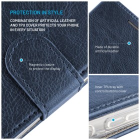 Kryt na mobil FIXED Opus perfektně ochrání váš smartphone proti pádům, škrábancům a nečistotám. Telefon je pevně uchycen v silikonovém krytu, který dobře absorbuje nárazy, ochrání mobilní telefon i z bočních stran a zároveň zabraňuje vyklouznutí telefonu z obalu. Bezpečné zavírání pouzdra zajistí magnetická spona. Čelní tvrzená část disponuje větší kapsou na bankovky a 3 sloty nakarty. Pouzdro lze nastavit snadno a rychle do polohy stojánku pro pohodlné sledování videa.