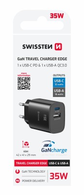 SWISSTEN EDGE GaN 1x USB-C PD 35W + 1x USB-A 18W QC