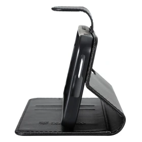 Praktický výřez na sluchátko na přední straně krytu umožňuje bezpečné a příjemné telefonování i se zavřeným pouzdrem po přijetí hovoru. Uvnitř pouzdra zajisté využijete dvě přihrádky na karty, nebo doklady a na pravé spodní straně plastové vaničky je výřez pro provlečení poutka.