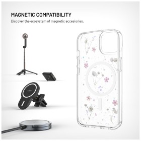 Stylový ochranný kryt FIXED MagBloom s podporou MagSafe pro Apple iPhone 13. Jeho originální vzled opravdu nepřehlédnete. Dominantou obalu jsou zalisovány pravé sušené květy s jemnými třpytkami zalisované do zadní strany, ty si zachovávají svůj přirozený tvar i barvu. Čirý materiál zároveň přirozeně odolává žloutnutí.