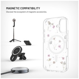 Stylový ochranný kryt FIXED MagBloom s podporou MagSafe pro Apple iPhone 16. Jeho originální vzled opravdu nepřehlédnete. Dominantou obalu jsou zalisovány pravé sušené květy s jemnými třpytkami zalisované do zadní strany, ty si zachovávají svůj přirozený tvar i barvu. Čirý materiál zároveň přirozeně odolává žloutnutí.