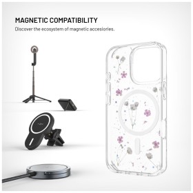 Stylový ochranný kryt FIXED MagBloom s podporou MagSafe pro Apple iPhone 16 Pro. Jeho originální vzled opravdu nepřehlédnete. Dominantou obalu jsou zalisovány pravé sušené květy s jemnými třpytkami zalisované do zadní strany, ty si zachovávají svůj přirozený tvar i barvu. Čirý materiál zároveň přirozeně odolává žloutnutí.