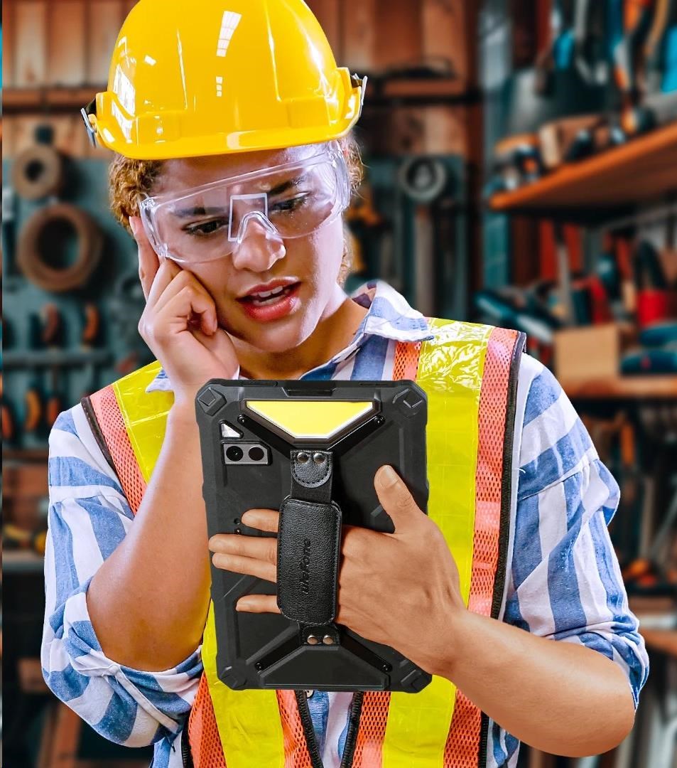 Pevná stavba tabletu zajišťuje spolehlivou odolnost i v nejnáročnějších podmínkách. Aby tablet z ruky jen tak nevyklouzl, výrobce přidal možnost upevnění zadního řemínku, který je součástí balení. Ten snižuje riziko pádů a zvyšuje pohodlí při používání.