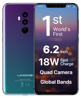 Mobilní telefon UMiDIGI přináší kombinaci nádherného designu, hliníkového pevného rámu, těla z tvrzeného skla a maximální ergonomie, která je nutná vzhledem k větší úhlopříčce displeje. Tomu dopomáhá jak zaoblené přední sklo tak všechny zaoblené hrany telefonu.